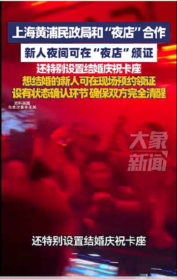 上海黄浦区民政局与大型夜店合作,推动情侣登记结婚,引起许多议论。